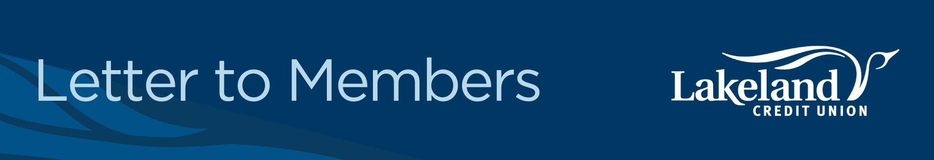 Our member value proposition is getting even better! We have enhanced our pricing model to embed our annual year end patronage into current interest rates and fees. This provides the certainty and benefit of the best price in the market right up front. The Lakeland Credit Union advantage will be easier to understand when comparing our rates and fees to the competition. When we say, “Your choices matter, choose Lakeland Credit Union”, it will now be easier than ever to do so!