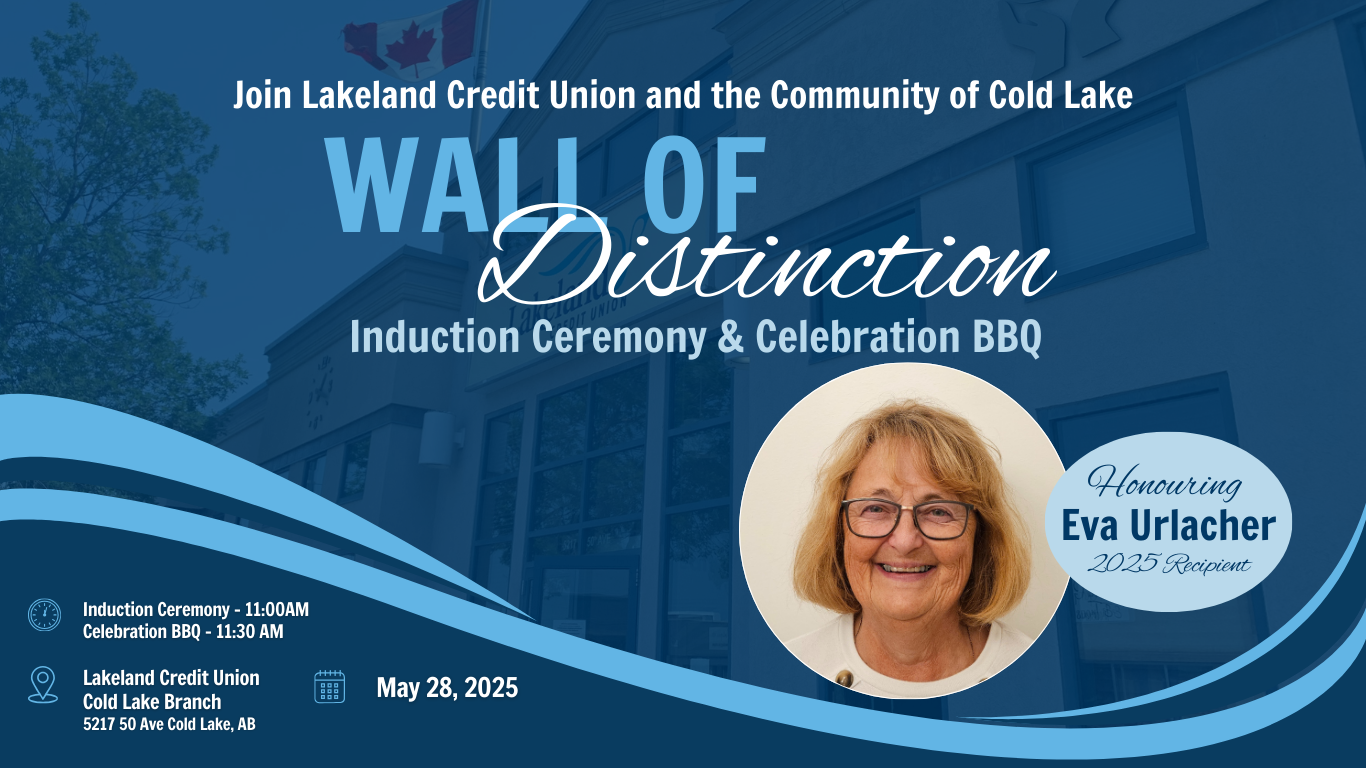 This year we are proud to honour Eva Urlacher, our 2025 inductee into the Wall of Distinction on May 28, 2025 at 11:00 AM.